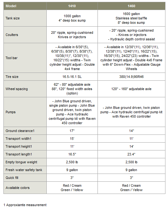 The 1410 utilizes a robust 4 x 4 double mainframe with twin cylinder lift to increase reliability. Toolbars are available up to 27` and provide ample crop clearance. The 1410 offers superior ground speeds and improved penetration.