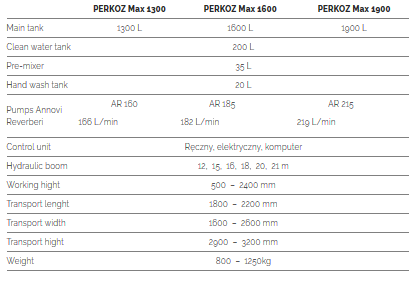 PERKOZ MAX 800, 1000, 1300, 1600, 1900. Using the experience gained over many years in the production of smaller PERKOZ mounted sprayers we have built the Perkoz Max sprayer, it has been designed for use in medium and large farms. The possibility of purchasing an additional tank with a separate pump mounted on the front TUZ allows you to increase the sprayed area while balancing the weight of the tractor itself. To build this sprayer we used the highest quality components from the leading manufacturers, which resulted in a sprayer meeting the requirements of modern agriculture.