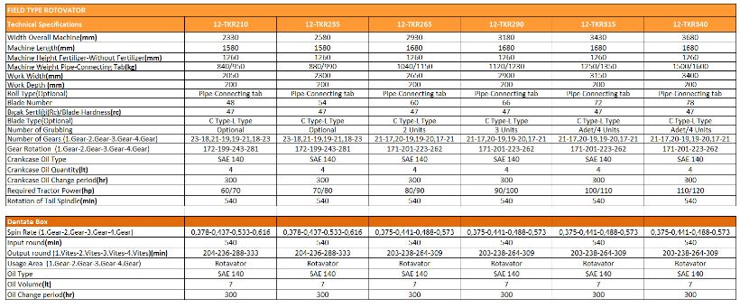 Koylu Rotovator; propelled shaft is connected by 3 point tractor which is operated with a suitable. 360-410-460-510 cm series Koylu Rotovator prepares the seed bed with tools such as chisel, plow harrow and saves from time, fuel equipment, as well as repair cost. With four different gears in the gearbox, there is a mechanism to transmit the turnover speed of blades that break down the soil and more easily.