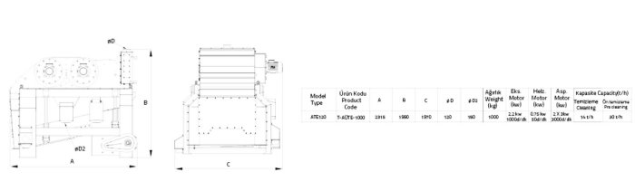 Machine has a compact desing. Product is subjected to four cleaning process, three at the product entrance part and one at the cleaned product exit part. It has efficient and productive aspiration unit. For eache type of grain, it provides high opportunity for sieving with minimum area. With the eccentric system property it offers effective cleaning ability and as a result perfect cleaning. It is used in pre-cleaning, precision cleaning, and grain cleaning systems. Sieve replacement is very easy.
