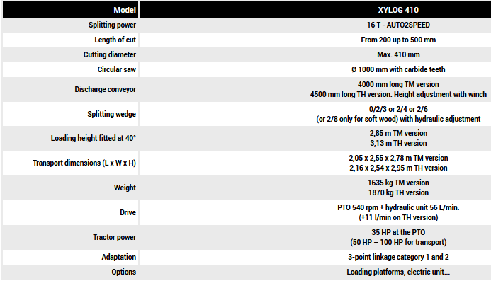 Wood processor fitted with a circular saw for woods up to 410 mm diameter. Cutting through circular saw with carbide teeth: Ø 1000 mm. Excellent value for money for a professional use.