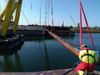 Bubble curtains can be used to construct artificial visual locks for fish or other organisms. Bubble curtains are also used to prevent water masses from interfering. Bubble curtains can be quickly established using a diffuser hose and a compressor. Typical applications are in seaports and marinas to achieve ice-free conditions. Other areas are pollutants such as oil spills separated from other bodies of water.Bubble curtains can also be used on the estuary and in ducts to prevent water types from interfering. A good bubble curtain has a tight and massive wall of bubbles, which are made at low energy costs. Bubble curtain in a canal in the Netherlands as a boat passes.