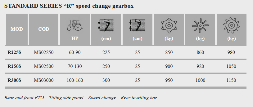 Serie R is a machine for medium farms. It is built with a tubular gear tank in a single piece that guarantees strength and indeformability; the knives consist of a single piece held by a single nut for maximum ease of maintenance.