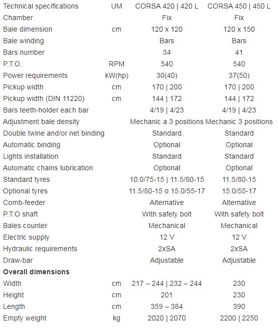 Mascar Corsa - Model 420 & 450 -Fixed Chamber Round Baler With Bars