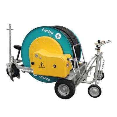 The FB Series from Ferbo Srl consists of fixed hose reel irrigators designed for agricultural use. These machines feature a galvanized chassis, painted reel and mechanical parts in RAL 5021, and a flanged turbine with speed control.