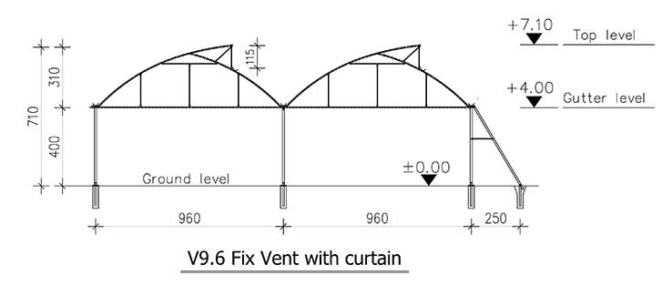 Gildan - Model V9.6 -Fixed Vent with Curtain Greenhouses