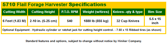 Whether you’re chopping green forage for cattle feed or shredding crop residues after harvest, you’ll find that the Hiniker 5710 Flail Forage Harvester offers outstanding versatility from a simple, reliable design. By using the 32-knife flail cylinder as both cutter and impeller, the expense and maintenance of a separate conveyor and blower system is eliminated. The adjustable discharge spout assures even front-to-rear loading. Or you can open the rear discharge door to bypass the spout and spread material evenly on the ground.
