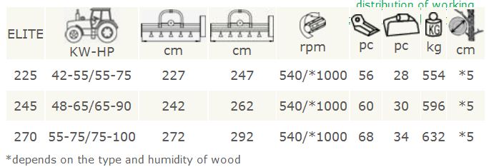 - Gearbox 540 rpm with free wheeling clutch