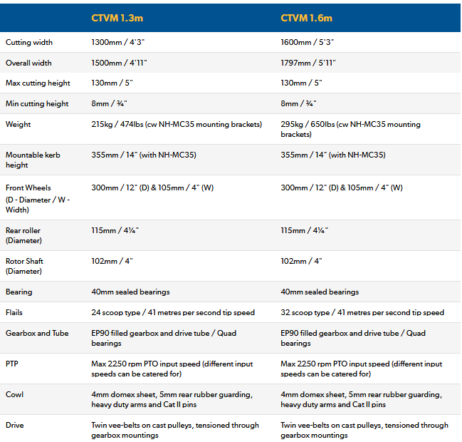- 1.3m and 1.6m cutting widths