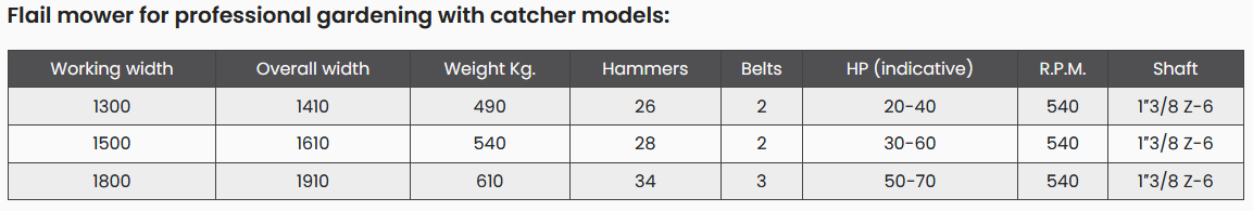 The Flail Mower for Professional Gardening is specially designed for shredding grass, whether on golf courses, urban green spaces, parks and gardens, and for branches of up to 2cm in diameter, and is for both private and professional use. This mower is suited to the smallest tractors, from 20 to 70 HP. Low power absorption. Roller for height adjustment. Very solid and sturdily built. Uniform shredding.