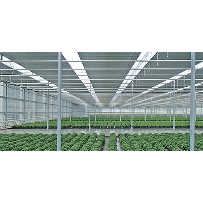 Flame retardant screen for blackout and energy saving. For controlling day length, the double layered OBSCURA 10070 FR WB+BW brings 99.9% blackout – enough for the most sensitive plants. Choosing an aluminum upper side retains most heat, while white is better for cooling. And for the underside, choosing white will intensify the effects of supplemental lighting. This product is made from flame retardant materials alone, this is the optimum choice for all installations from a fire safety perspective. It meets the highest safety standard in the horticultural industry and test reports are available from various authorities.