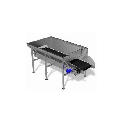 Engine gear box with one speed (very slow); Molded rubber mat; Stainless steel bearings; Teflon base (under the belt); Box capacity of 1 ¾; 6’ large, 24” deep x 10’ feet long; Conveyor 36” large x 12’ long.
