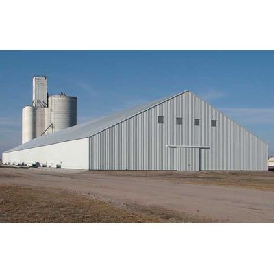 Designed to meet virtually any grain storage requirement. By utilizing a computer-based system, Behlen engineers can turn all-steel rigid frame buildings into highly efficient, low-cost grain storage structures. Building design options include roof slopes that range from 1:12 to 7:12, and grain depths of up to 20` against building sidewalls. Behlen grain storage buildings can provide the storage alternative you have been looking for to solve your large storage needs. Behlen grain storage structures can be of all-steel rigid frame....a combination of precast concrete walls and rigid frame. Building panels can be galvalume or color-coated for long lasting weather ability.