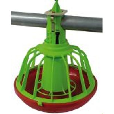 The simple and versatile poultry feed pan for broilerc and guinea fowls. It can be used from one day old to finish. I Automatic feed volume adjustment from chick to adult phase. Specific version for guinea fowls. Strong fixing to the tube for nervous animals. Bottom pan with large anti-waste ring. Available for tube a 35-38-45-48 mm.