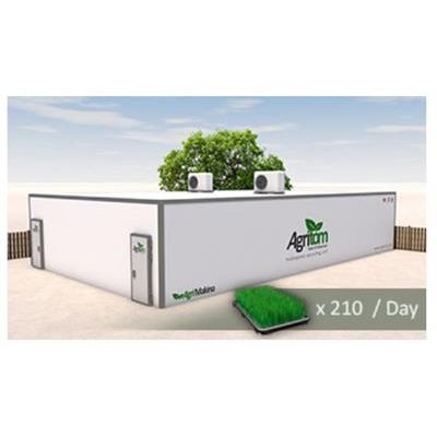 The AGR-2100SP Fodder System has 1,470 trays and can produce 2,100  – 2,835 kilograms of sprouted fodder per day from must 300 kilograms of barley seed.