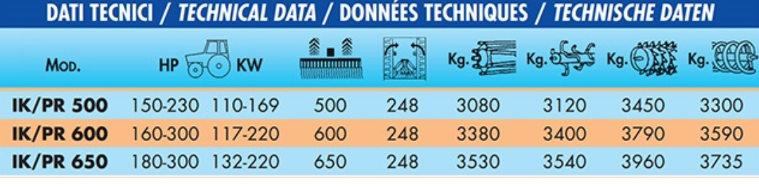 - 400 HP central gearbox standard on IK/PR 600, IK/PR 650, IK/PR 700, IK/PR 800 and on request on IK/PR 500.