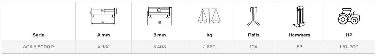 Tractors from 120 to 200 HP. Larghezza di lavoro 5000 mm. Folding shredders for cereals (wheat, barley, corn, etc.), sunflowers, grasslands and cover crops.