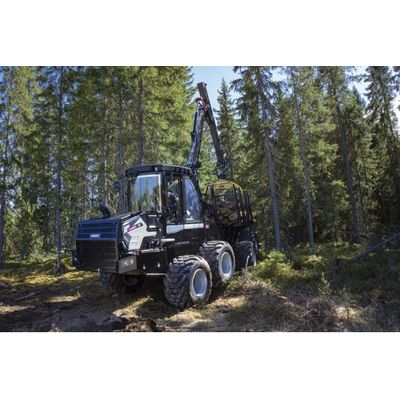 The cabin offers first-class comfort and an unobstructed view when driving and loading. It is spacious and has big storage compartments.  The forwarder is easy to maneuver because the wheels are in sight.