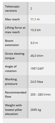 The Cranab HC185 - optimised forestry technology through and through. The parallel harvester crane is a strong tool for single action harvesters in final felling and tough thinning, and never compromises on performance! The slewing, lifting and telescopic functions are powerful and well-dimensioned. The crane also boasts a geometry that provides good reach and an impressive lifting height.