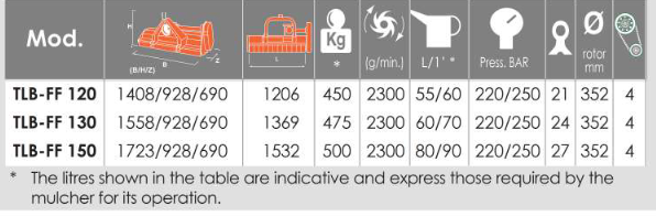 The TLB-FF hydraulic forestry flail for skid steers is a robust and versatile tool suitable for the shredding of grass, reeds and bushes up to a maximum of 9/10 cm in diameter. Fits skid steers with a minimum power of 50 Hp (22 Kw).