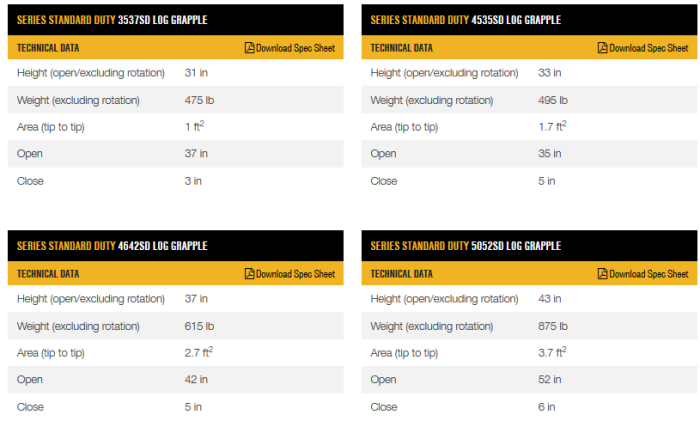BUILT TO DOMINATE THE INDUSTRY…AND THE COMPETITION. For the last 40 years, Rotobec Log Grapples have been considered the logging industry benchmark for toughness and durability. Available in our Standard Duty, Heavy Duty and Super Heavy Duty series, there is a Rotobec Log Grapple suited to every application. Equipped with Rotobec’s own high-pressure cylinders, robust interlocking head structure, and our RT-Series watertight rotators, it is no wonder that our Log Grapple has been out-lifting, out-lasting and out-performing the competition for decades.