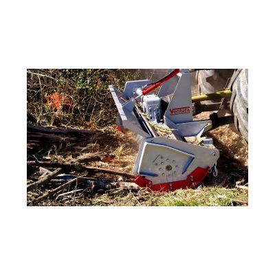 Ventura Junior Forestry Mulcher, is designed to power tractors from 50 to 130 hp. Is able to shred branches, bushes and trunks up to 200 mm in diameter. For all types of forests, gardening, pruning and planting agricultural use. Compact and robust frame made from steeling sheet. SPBX toothed transmission belts rotor shaft with 360 flating hammers wear resistant steel. Forged hammers for a long life and heavy work. rear door guard with hydraulic opening. Steel skig with a depth regulation.