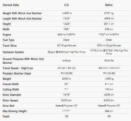 The C100LGP model features a higher ground clearance and a heavier undercarriage. The C100LGP’s larger chain and wider pads provide extra floatation and traction and a longer service life.