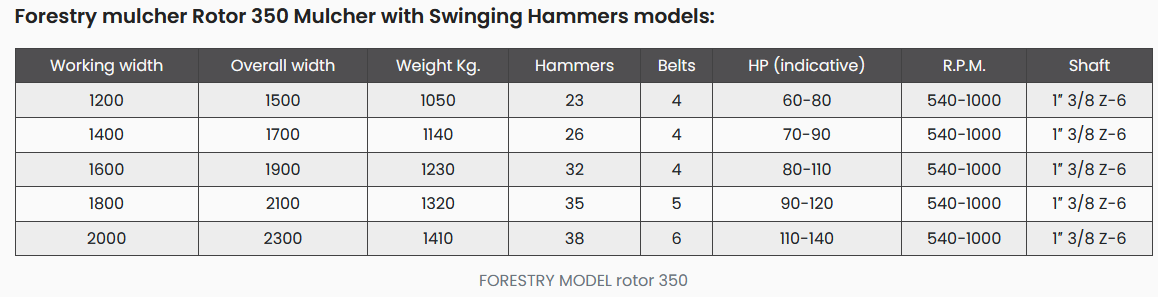 The Rotor 350 Mulcher with Swinging Hammers is specially designed to shred pruned branches, small trees and debris from tree-felling and scrub clearance.