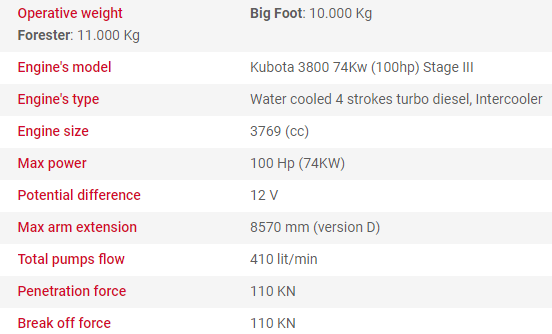 The R755H Big Foot - Forester model is an innovative spider excavator, which features a recently updated hood aesthetics, able to guarantee excellent 360º visibility. The beating heart of the machine is a 3800 cm³ Kubota engine; from 100 hp (74Kw). It has a very performing hydraulic system but without electronic management, which simplifies maintenance operations (and any repairs) as much as possible. The excavator has considerable lifting force and therefore can also be used with heavy attachments that require a lot of hydraulic power. The frame is enclosed within 2100 mm making it therefore also suitable for moving in very narrow streets.