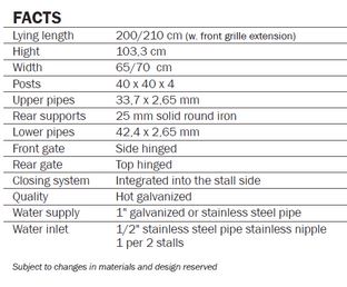 The central lock may be operated with one hand only. It can be operated from alley and pen. The locking system is placed in accessible height. Sturdy equipment provides long durability.