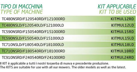 The kit contains a set of special steel shredding blades and a steel case, which are easily fixed to any of our mowers.