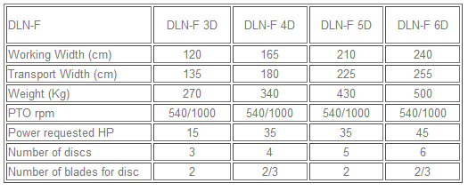 All disc rotary mowers have the lubrication of the cemented gears in oil bath. All models DLN-F with pair discs can mount, in addition to the standard oval discs with 2 blades, the triangulate discs with 3 blades that permit high cutting speed.