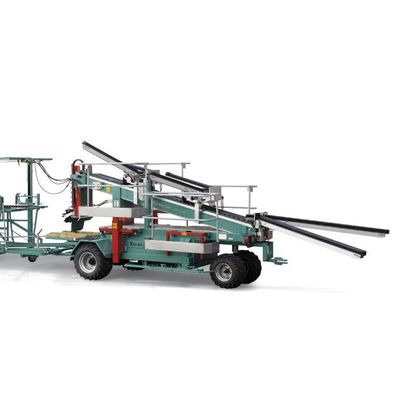 Fruit picking machine for row distances of 3,60 to 4,50 metres and plant heights to a maximum of 3,80 metres. Designed to be multi-purpose, it has a generous standard equipment, including the automatic trailer and the air compressor for 6 to 8 pruning shears. The CF 110 can be employed in many seasonal tasks. Equipped with a 4 cylinder Diesel engine, it has a top speed of 18 km/h. The four lateral platforms have generous dimensions (1,38 x 0,40 meter) which allow the pickers maximum freedom of movement. The high quality which distinguishes all the machines of the TECNOFRUIT series and the simplicity in handling them make these machines into ideal partners, also for large companies.