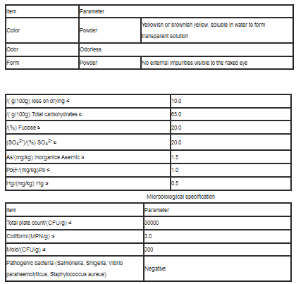 Fucoidan is a yellowish powder of brown seaweed extract. Shandong Jiejing Group use laminaria japonica as material to extract fucoidan. The fucoidan CAS NO.: 9072-19-9. Fucoidan has been widely used in functional foods, health care products, beauty cosmetics, biomedical materials, plant growth stimulators and many other fields around the world. It is an important seaweed activity. Substances can effectively eliminate Helicobacter pylori, regulate intestinal flora, promote tumor recovery, and play a unique role in many fields such as promoting chronic wound healing, moisturizing skin care, and promoting crop growth.