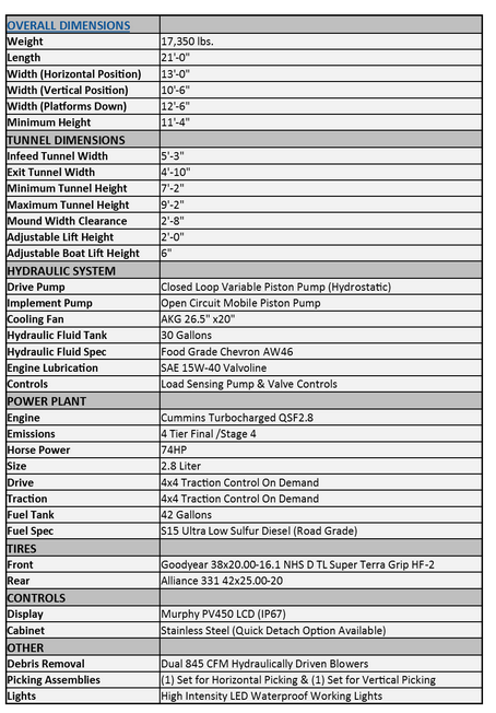 As with most creations from A&B, the Fulcrum fresh harvester was designed out of necessity due to rising labor costs, and the pure lack of laborers period. A&B has heard the cry of our industry, customers, and our growers. We have dedicated three years of research and development to decipher a solution to yet another problem. This is a historical turning point in time – a fulcrum moment – that will change the industry. Seize that moment and don’t miss out on the chance to advance your future with the Fulcrum fresh harvester from A&B!