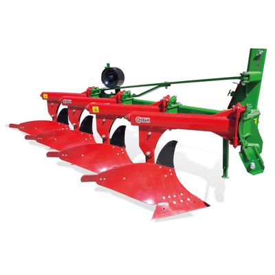 The angle changes made to the moldboard enables the soil to slide by the moldboards and helps it pass by between them and turn the soil over thus getting the weed buried in the soil. The width of the plough can easily be changed to 12-13-14-16 inches with a bolt. More can be added using the strap on the end of the plough. There is tension control on the spring shock absorber. Each sock has a directional adjustment and soya adjustment.
