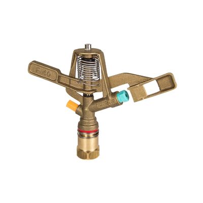 Ideal for agricultural use, medium flows, and suitable for removable pipe systems. It can be assembled with one or two nozzles. Sturdy design confers resistance and a longer wear life. Suitable for farmers who look for a sturdy and durable product. Its angle water jet assures perfectly balanced performance of the sprinkler reducing evaporation losses and wind effect. It can be assembled with female base thread in order to avoid waste of material.