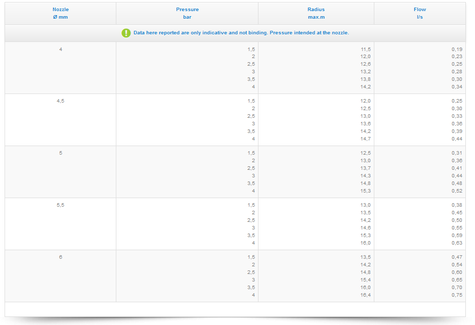 The nozzle is equipped with a flow breaker that helps obtaining small drops and homogeneous distribution of water.