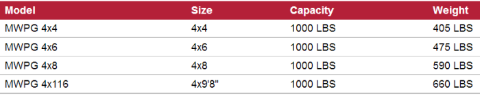 - Optional End Fork Slots make it easy to transport your platform. To be used for loading and unloading only