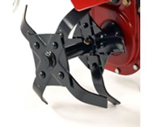 The four rear-mounted steel tine rotors propel the cultivator forwards as well as turning over the soil and reducing it to a tilth, reducing the time of any heavy digging job