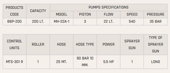 High-pressure produces a powerful economic pumps engine and  wheels through , allow for easy movement in narrow spaces between the rows . Fruit trees and other low-lying plants is an ideal machine for spraying applications.