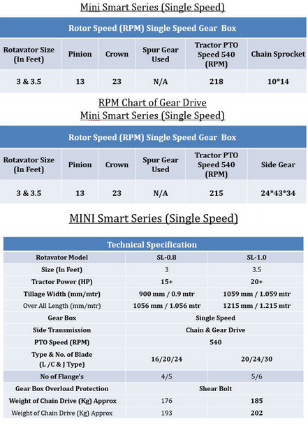 It is a single speed light weight Rotavator, can be operated on 18-20 H.P. Tractor.