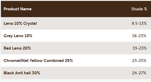 A high-density polyethylene UV srabiligod net, used to prevent hail damage in a broad variety of crops. Its transparent color allows the crops to receive a low level of shade. Flexible, light, strong and easy to cnstall. can be placed on simple support structures. The net is recyclable.