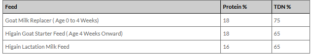 Goat Milk Replacer ( Age 0 to 4 Weeks). Protein % 18. TDN % 75.
