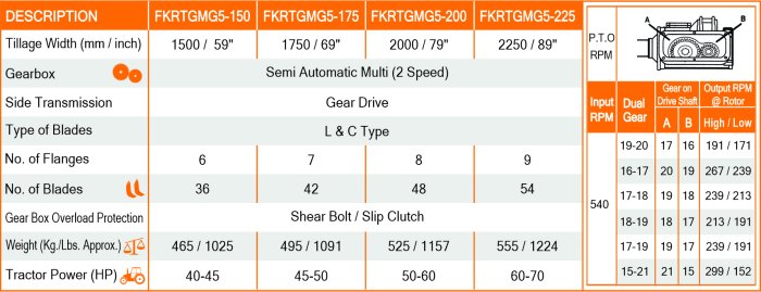 It has a Semi automatic dual speed gear box, which provides option of 2 different rotor rpm for different soil conditions and applications. We can easily change the rotor speed with the lever attached , without removing the back cover of the gear box. Heavy duty side gear drive in oil bath which ensures high performance in all working conditions. It can loosen & aerate soil up to 7 inches deep. Heavy duty spring assembly in plank which ensures perfectly leveled and finished seedbed.