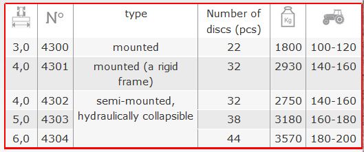 • two rows of discs, 560 mm in diameter, 6 mm in thickness