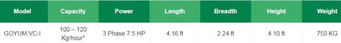 Goyum - Model VC-I -Virgin Coconut Oil Extraction Machine