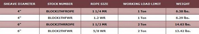 Unlimited load is 4 times the working load limit. MR - Manila Rope. WR - Wire Rope.