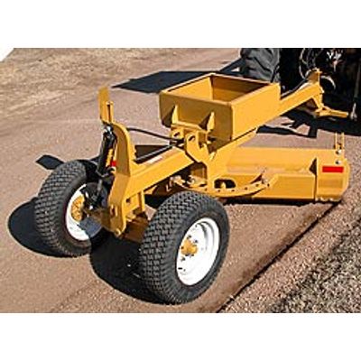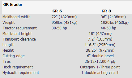 The Hoelscher GR compact grader gives versatility, productivity and added value to your small tractor. The pull-type design, with a trunnion style hitch attached to the tractor`s 3-point arms, gives it exceptional maneuverability, improved productivity and reduced operator input. Compact size allows for use in residential areas, or around construction sites. The unit`s heavy weight, with an 18" high moldboard lets it do the tough jobs. Massive 1" side plates on the frame and a heavy 3/8" thick moldboard provide for maximum penetration and rigidity. The king-pin is supported on top and bottom for increased life and more accurate cutting. The 1" thick rack provides large contact area of the lock pin, for positive blade settings, up to 45 degrees left or right. On-the-go control of blade tilt lets you maintain the desired grade, up to 20 degrees up or down. Large tires provide stability for consistent grading.