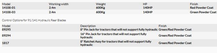 Fieldquip - Model 141 Series -Grader Blades